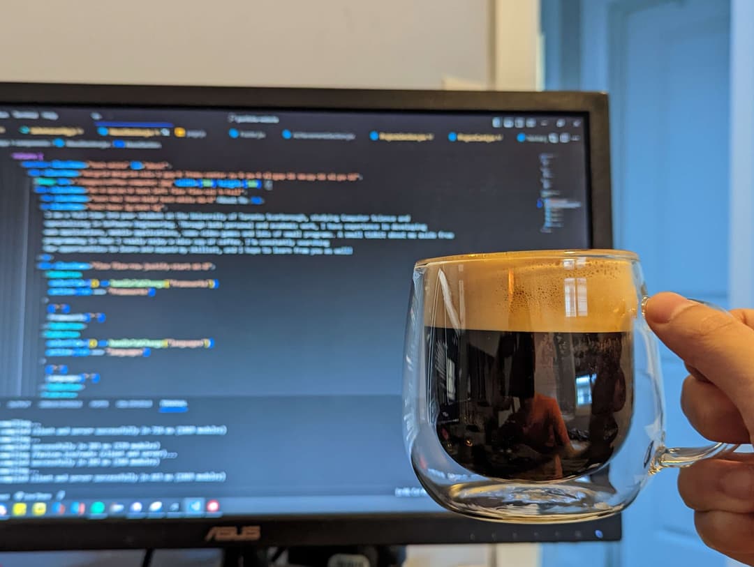 I am a 4th year student at the University of Toronto Scarborough, studying Computer Science and specializing in Software Engineering. I am also currently interning at RBC as an Automation Analyst until April 2025. Through both personal and academic work, I have experience in developing web applications, mobile applications, some video games and lots of small programs. A small tidbit about me aside from programming is that I really enjoy a nice cup of coffee. I'm constantly searching for opportunities to learn and expand my skillset, and I hope to learn from you as well!